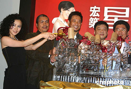 香港著名影星劉嘉玲為臺北豪宅“星光大道”代言。圖為劉嘉玲(左一)出席十一月二十四日傍晚在臺北舉行的記者會。中新社記者:董會峰