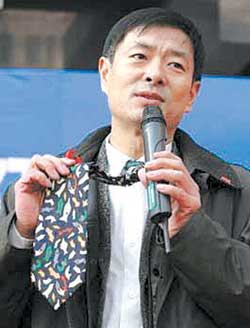 演講行將結(jié)束時(shí),復(fù)旦學(xué)子對(duì)濮存昕的安全套領(lǐng)帶興趣漸漸濃厚起來(lái),主持人代表復(fù)旦大學(xué)紅十字會(huì)向他“索要”那條安全套領(lǐng)帶,不過(guò)由于這條領(lǐng)帶是他從泰國(guó)帶回來(lái)的珍藏品,不便贈(zèng)人,濮存昕只得改送一只印有他本人卡通形象的安全套。