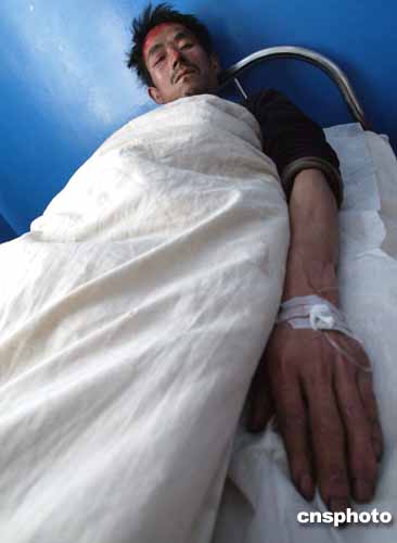 圖:幸免遇難的陳家山煤礦礦工接受治療