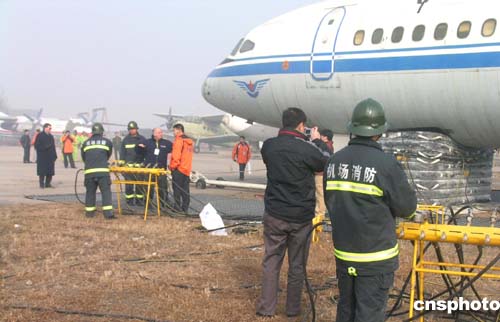 中國民航十一月三十日在天津舉行殘損飛機搬移設備培訓演練,以進一步提高中國民用機場應急救援水平,使發(fā)生事故的機場盡快恢復運行。作者:中新社