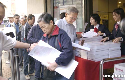 中新社香港十二月六日電 香港首個房地產(chǎn)基金“領(lǐng)匯房地產(chǎn)投資信托基金”,今起派發(fā)申請表接受市民認購。因回報息率高等因素,領(lǐng)匯基金一直受捧,有市民一大早即到發(fā)表的銀行外排隊等候。