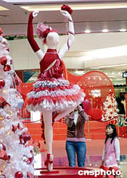 十二月初,盡管距離圣誕節(jié)還有一段時(shí)間,香港各大商場(chǎng)紛紛耗資裝飾,為即將到來(lái)的銷售旺季營(yíng)造氣氛。圖為女童在又一城商場(chǎng)內(nèi),仿佛置身于搖曳生姿的舞蹈世界里。作者:譚達(dá)明