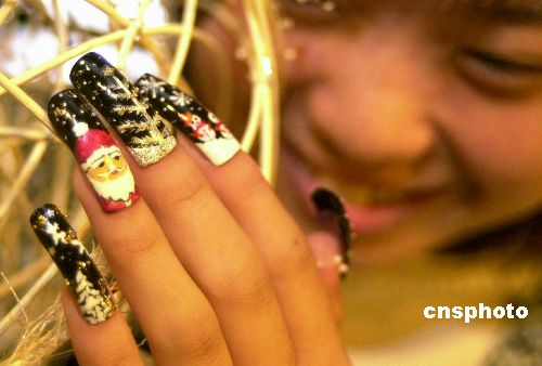| 12月5日,市民張小姐在美甲中心為自己的指甲增添的一個(gè)圣誕老人和飄著雪花的圣誕樹(shù)。據(jù)介紹,這些“圣誕老人指甲”全部是手繪在人造指甲片上,然后使用特殊的粘貼工藝與正常指甲結(jié)合的天衣無(wú)縫,一個(gè)多月也不會(huì)脫落。圣誕節(jié)臨近,這種獨(dú)具個(gè)性的“圣誕”指甲受到許多新潮女孩的喜愛(ài)。趙健鵬 攝