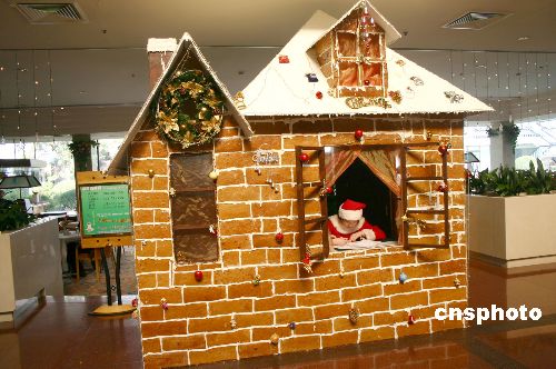 “圣誕節(jié)”快來臨,杭州商家乘機(jī)大做文章,以期迎來一個(gè)好賺頭。眼下,杭州的大商場(chǎng)、賓館門口都放滿了圣誕樹、圣誕禮物。杭州某賓館用巧克力和糖做了一個(gè)圣誕屋招徠顧客。作者:張茵
