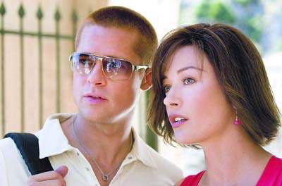戲中兩人也不乏接吻鏡頭,澤塔·瓊斯和布萊德·彼特被問及拍接吻戲的感受時(shí),一對(duì)緋聞男女立即露出尷尬表情,繼而低下頭苦笑。