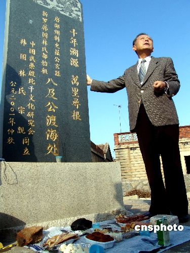 韓國憲政會政策委員會議長、林氏中央會會長林芳鉉先生千里迢迢帶團參加慶典,當(dāng)天下午,韓國代表團一行還特地趕往惠安東嶺彭城拜謁“林八及渡海處”遺址,他們還帶來了韓文撰寫的詳細記載了唐朝林八及渡海赴韓及后裔來泉尋根歷史的碑文,準備銘刻在前年用中文所立“千年溯源萬里尋根”紀念碑的背面。林芳鉉介紹,韓國也有個地方叫彭城,唐朝時始祖林八及公從惠安彭城去往韓國,因為懷念故土,將那里命名為彭城。韓國有姓氏300多個,林姓位列前十,林氏后裔現(xiàn)有100多萬人。