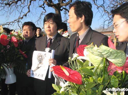 國際數(shù)學大師陳省身遺體告別儀式十二月十二日上午在天津北倉殯儀館舉行。海內(nèi)外人士手捧大師遺像和他生前喜愛的紅掌花,依依送別陳省身先生。作者:柳俊武