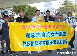 日本軍國(guó)主義在中國(guó)南京大屠殺67周年之際,香港工會(huì)聯(lián)合會(huì)社會(huì)政策委員會(huì)成員13日在香港的日本駐香港領(lǐng)事館前舉行游行,聲討日本軍國(guó)主義的罪行,為遇難者哀悼。作者:趙振清