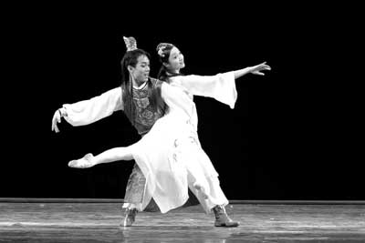 趙明的第一個承諾是:“大家都說《紅樓夢》難做,原來的著作太大,大到?jīng)]人敢碰,雖然我的舞劇從原書的120回濃縮到舞臺上的90分鐘,我可以保證我的舞蹈可以讓每一個觀眾明白舞臺上到底發(fā)生了什么。換句話說,就是每個觀眾都可以看懂我的《紅樓夢》中的故事到底講了些什么。”舞劇的開場堂堂皇皇,賈府各色人等魚貫出場,奢華也好、靚麗也好,只有當寶、黛、釵三人紛沓而至的時候,音樂和舞蹈才呈現(xiàn)出真正的眷戀。集萬千寵愛于一身的寶玉精靈般出場,寶釵的出場則要雍容華貴得多了,她代表一種身份的象征,而林妹妹走上舞臺的一剎那,人們就會感受到舞臺上刺骨的冷,最終點化了全局的宿命——為愛而亡。不用注解、不用說明,趙明的舞劇就這樣在開始的時候已經(jīng)讓觀眾明白了每個人物的身份和他們在戲劇中的命運。