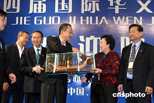 開幕式由國僑辦副主任劉澤彭主持。泰國華文民校協(xié)會永遠名譽會長梁冰、美國中文學校聯(lián)合總會創(chuàng)會會長許笑濃、美國全美中文學校協(xié)會會長何振宇、緬甸曼德勒福慶學校副校長李祖清等作了大會發(fā)言。