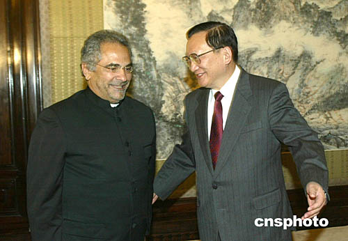 中國國務(wù)委員唐家璇十二月十四日在北京中南海會(huì)見來訪的東帝汶外交部長奧爾塔。中新社記者:史利