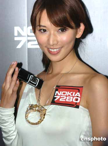 臺(tái)灣名模林志玲14日晚在香港會(huì)展中心為諾基亞7280流動(dòng)電話推出造勢(shì)。作者:趙振清