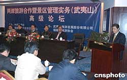 來自金門、馬祖、臺(tái)灣及祖國大陸的近百名旅游業(yè)界及相關(guān)人士十二月十六日在福建武夷山出席由中國新聞社、福建省文化經(jīng)濟(jì)交流中心以及武夷山市政府聯(lián)合主辦的兩岸旅游合作暨景區(qū)管理實(shí)務(wù)高級(jí)論壇開幕式并踴躍發(fā)言,為兩岸旅游業(yè)界的合作與交流建言獻(xiàn)策。