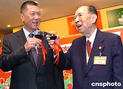 何厚鏵與馬萬(wàn)祺(右)相互敬酒問(wèn)候。作者:宋吉河