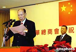全國(guó)政協(xié)副主席、澳門中華總商會(huì)會(huì)長(zhǎng)馬萬(wàn)祺,16日在澳門中華總商會(huì)慶祝澳門特別行政區(qū)成立五周年酒會(huì)上致辭,澳門特別行政區(qū)行政長(zhǎng)官何厚鏵參加酒會(huì)。作者:宋吉河