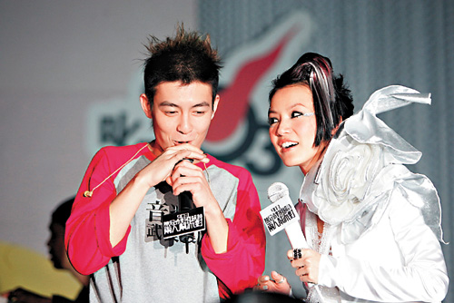 有“緋聞王”之稱(chēng)的Edison,看來(lái)不太介懷緋聞事,邀一班緋聞女友上臺(tái)撐場(chǎng),毫不避忌;更與最新緋聞女友Stephy在臺(tái)上不時(shí)耳語(yǔ),看來(lái)甚親密。事后Edison表示,所謂耳語(yǔ),是因?yàn)镾tephy受驚,于是他便安慰對(duì)方。