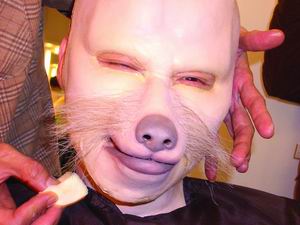 為了這個角色,張學友日前在《雪狼湖》排練最緊張的階段,特地抽出時間來制作“老狼”這個造型,還專程請來了香港著名造型師奚仲文來設計,而負責制作的則是香港大名鼎鼎的特技化妝師陳國雄。為追求逼真的效果,整個模型的制作過程及其復雜,在根據張學友的頭部、面部特征制作“老狼”頭部模型時,僅僅倒模一個程序,就整整花費了六個小時的時間。倒模做出形狀之后,制作人員還要將一絲不茍做出的毫發(fā)必現的模型給學友試妝,然后不斷修整,直至這個“老狼”與張學友合二為一。這僅僅是為了“老狼”這個形象,從倒模制作到拍攝完畢,花去眾多造型、設計人員以及學友整整3天的時間,耗資更是超過六位數。