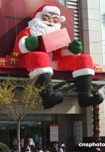 圖:巨型“圣誕老人”坐陣申城商廈招攬顧客