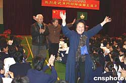 來自小學(xué)舞蹈組的五十六位同學(xué),穿著五十六個少數(shù)民族的艷麗服裝,一一亮相,并表演了《歡聚澳門》歌舞劇。甫下飛機即趕來的潘曼霞不顧勞頓,高歌一曲《我愛你,中國》,贏得滿堂喝彩。
