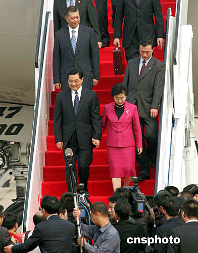 12月19日上午,中共中央總書記、國家主席、中央軍委主席胡錦濤首次乘專機抵達澳門,出席澳門回歸祖國五周年慶典活動。作者:宗金柱