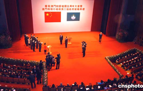 二十日,澳門(mén)隆重舉行慶祝澳門(mén)回歸祖國(guó)五周年大會(huì)暨澳門(mén)特別行政區(qū)第二屆政府就職典禮。作者:梁永強(qiáng)