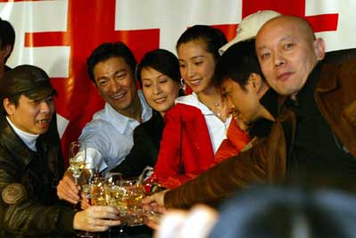 510萬、3000萬、5300萬,這3個數(shù)字分別是《天下無賊》上映第1天、第4天和第8天的全國票房,而昨晚,也就是《天下無賊》上映的第10天,這個數(shù)字又猛漲到8000萬。為了慶祝影片取得如此佳績,同時(shí)慶祝馮小剛再三打破賀歲片票房紀(jì)錄,“眾賊”紛紛舉起小榔頭,鑿破了代表8000萬元票房大關(guān)的巨大冰塊。