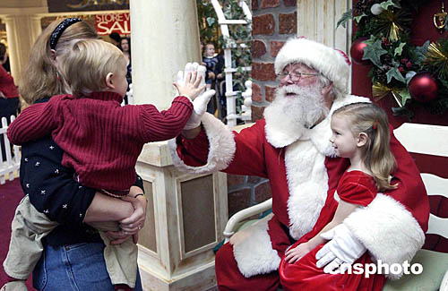 當?shù)貢r間十二月二十四日圣誕節(jié)前夕,硅谷最重要的城市圣荷西的圣誕老人在購物中心關(guān)門前的最后一分鐘還在向孩子們祝賀圣誕。作者:陳鋼
