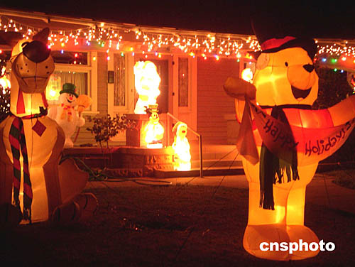 圖:洛杉磯千家萬戶點(diǎn)亮圣誕燈飾
