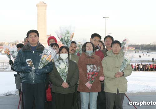 毛澤東的孫子毛新宇代表父母、妻子和2003年12月26日出生的兒子毛東東(毛澤東的曾孫)到北京毛主席紀念堂敬獻花籃。作者:任晨鳴