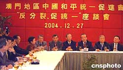 二十七日,澳門(mén)地區(qū)中國(guó)和平統(tǒng)一促進(jìn)會(huì)舉行了“反分裂、促統(tǒng)一”座談會(huì),與會(huì)人士對(duì)巳正式進(jìn)入立法程序的《反分裂國(guó)家法》紛紛表示贊同和支持。作者:梁永強(qiáng)