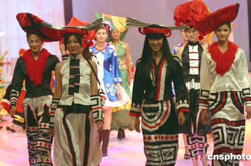 第十屆中國模特之星大賽冠軍莫萬丹(右一)、第五屆CCTV模特電視大賽總冠軍郭思雅、二00三年度中國首席名模王敏等二十多位名模,十二月三十日晚在廣西電視臺組織的《冠軍風(fēng)采》晚會上一展個人才藝,同時(shí)展演了時(shí)裝設(shè)計(jì)大師的作品。作者:蔣雪林