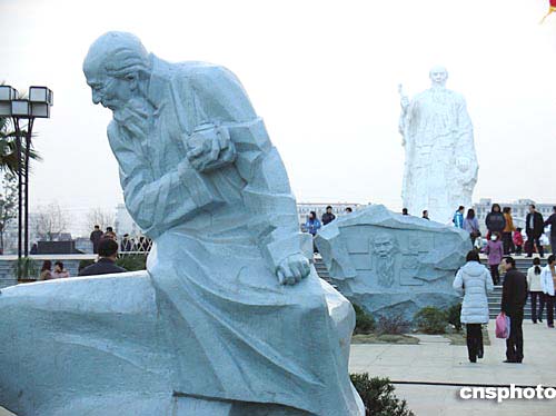1月1日,值此中國畫宗師齊白石誕辰141周年紀念日,湘潭市民紛紛前往白石公園瞻仰其雕像,緬懷一代藝術大師。公園內(nèi)5座淺藍雕塑將白石老人從最初的放牛娃到刻苦學藝并最終獲得國際和平獎的人生經(jīng)歷勾勒出來。作者:劉雙雙