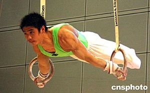 二○○四“蘇州高爾夫花園杯”全國(guó)體操錦標(biāo)賽暨奧運(yùn)會(huì)預(yù)選賽五月十四日在江蘇蘇州市體育中心拉開帷幕,來自中國(guó)各省、自治區(qū)、直轄市的二十二個(gè)代表隊(duì)的二百七十多名運(yùn)動(dòng)員將角逐雅典奧運(yùn)會(huì)參賽資格。作者:蔣振江