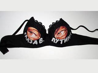 這次新的藝術(shù)品展覽包括25件胸罩,比爾佐表示,這些當(dāng)中有一個(gè)是獻(xiàn)給庫土索夫的,另一個(gè)是描述普京的眼睛,前蘇聯(lián)總統(tǒng)勃列日涅夫 的眉毛, 赫魯曉夫臉上的瑕疵,以及葉利欽時(shí)代的統(tǒng)治。