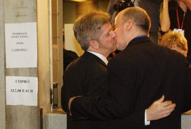 5月17日這一天,美國同性伴侶在美利堅的土地上將第一次獲得合法婚姻的權(quán)利。馬薩諸塞州最高法院2003年11月裁定,禁止同性戀者結(jié)婚違反反歧視法,因此將從2004年5月17日起允許同性戀者在該州登記結(jié)婚。