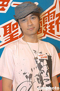 歌星古巨基5月19日在香港出席無線奧運節(jié)目《進軍雅典---燃點圣火雷霆夜》記者會,古巨基將聯(lián)同其它歌星及港姐表演非洲鼓。作者:鄧慶樂