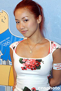 歌星鄭融5月19日在香港出席無線奧運節(jié)目《進軍雅典---燃點圣火雷霆夜》記者會,鄭融將聯(lián)同其它歌星演出「一個金牌的誕生」舞臺劇。作者:鄧慶樂