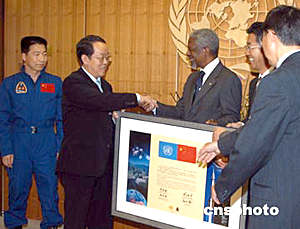 中國載人航天工程有關(guān)負(fù)責(zé)人指出,中國利用“神舟”五號載人飛船搭載聯(lián)合國旗,表明中國政府對與聯(lián)合國在和平利用外層空間領(lǐng)域的合作的重視,和對聯(lián)合國宗旨和原則的支持。這一行動也表達(dá)了中國政府和平利用太空,造福全人類的決心。