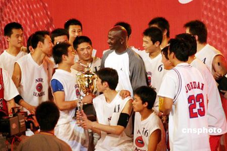 終于,當主持人宣布喬丹即將入場之后,在尖叫、高呼、跺腳、鼓掌聲中,邁克爾·喬丹一襲運動裝步入賽場主席臺,并頻頻向觀眾點頭致謝。好不容易穩(wěn)定了大家的情緒,比賽繼續(xù)進行,盡管雙方隊員都非常投入地爭奪冠軍,但似乎已經(jīng)沒有觀眾關(guān)心比賽了。最后,沈陽三十一中以六十二比五十四戰(zhàn)勝對手。
