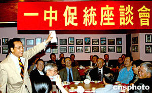 當?shù)貢r間五月二十日,紐約中國和平統(tǒng)一促進會在法拉盛舉行“一中促統(tǒng)”座談會,前紐約中華公所主席伍廷典(右四)與會,與會僑胞同聲抨擊陳水扁“五二0講話”。這是紐約傳統(tǒng)僑團首次公開參加紐約僑界的“反獨促統(tǒng)”活動。作者:趙海燕