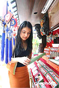 五月二十二日,參加第十六屆大賽總決賽的中國選手閻巍來到杭州古街清河坊,這位身穿清代宮廷服裝的中國名模儼然成了一名楚楚動人的“格格”。作者:張茵