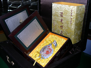 1996年6月,在錦州凌川酒廠地下偶然挖掘出清道光乙已年(1845年)穴藏貢酒四個木酒海(古代盛酒容器),藏酒四噸左右。經(jīng)專家考證,這是一批穴藏一個半世紀(jì)的貢酒實屬“世界罕見,珍奇國寶”,專家為之取名為“道光廿五”。