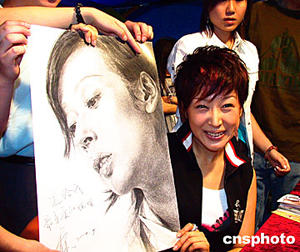 五月二十九日下午,孫悅在北京王府井為新專輯《她和她們》進行現(xiàn)場簽售,一歌迷送上自己創(chuàng)作的孫悅素描畫,以示支持。作者:韓藝冰