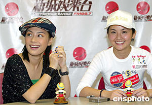 樂壇人氣組合Twins兩名成員蔡卓妍(阿Sa)、鐘欣桐(阿嬌)5月29日在香港新城電臺出席廣播劇《小木偶冰上奇遇記》宣傳活動。作者:鄧慶樂
