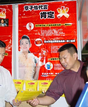 該產(chǎn)品的招商廣告極具誘惑力,為“有章孑怡代言肯定火”。很多市民乍一看以為是章子怡,發(fā)現(xiàn)根本不是一回事后直呼上當。