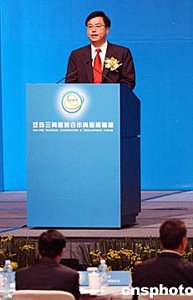 中共中央政治局委員、廣東省委書記張德江,6月1日在“泛珠三角區(qū)域合作與發(fā)展論壇”致詞時說,粵港澳關(guān)系已變得唇齒相依,憂戚與共,三地將共同努力,把大珠三角建設(shè)成全球最繁榮及最有活力的經(jīng)濟地區(qū)。作者:洪少葵
