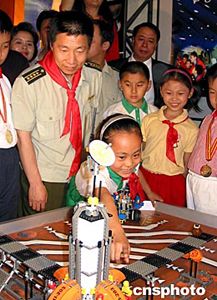六月一日,一位小航天迷在北京中國(guó)兒童中心向航天飛行員楊利偉介紹機(jī)器人火星探險(xiǎn)車(chē)。當(dāng)天,楊利偉在孩子們的簇?fù)硐鲁鱿艘浴皩W(xué)習(xí)科學(xué)文化知識(shí),發(fā)展祖國(guó)航天事業(yè)”為主題的兒童科技活動(dòng),與孩子們一起歡度“六一”。中新社記者:王歡