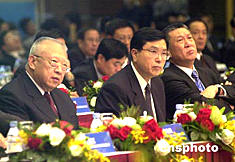 “泛珠江三角洲區(qū)域合作與發(fā)展論壇”二日移師澳門旅游塔會展中心舉行,中共中央政治局委員、廣東省委書記張德江、香港特區(qū)行政長官董建華、澳門特區(qū)行政長官何厚鏵等出席論壇。作者:梁永強