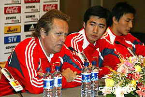 二零零六年世界杯足球賽亞洲區(qū)預(yù)賽中國(guó)隊(duì)對(duì)馬來(lái)西亞隊(duì)的比賽將于六月九日晚在天津舉行,中國(guó)足球隊(duì)主教練阿里漢六月八日在新聞發(fā)布會(huì)上表示,中國(guó)與馬來(lái)西亞隊(duì)的比賽將是一場(chǎng)艱苦的比賽,隊(duì)員們已經(jīng)做好了準(zhǔn)備。中新社記者:毛建軍