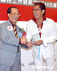 歌星譚詠麟6月9日在香港出席義務(wù)工作發(fā)展局舉行《全民義工參與賣旗日‧榮譽義工大使委任儀式》,義務(wù)工作發(fā)展局主席李澤培向譚詠麟致送紀念品。